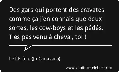 Des gars qui portent des cravates comme ça j'en connais que deux sortes, les cow-boys et les pédés. T'es pas venu à cheval, toi !