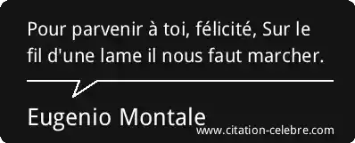 Pour parvenir à toi, félicité, Sur le fil d'une lame il nous faut marcher.