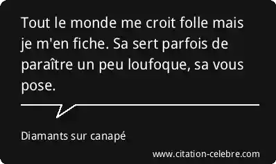 Tout le monde me croit folle mais je m'en fiche. Sa sert parfois de paraître un peu loufoque, sa vous pose.