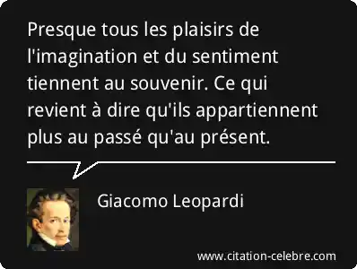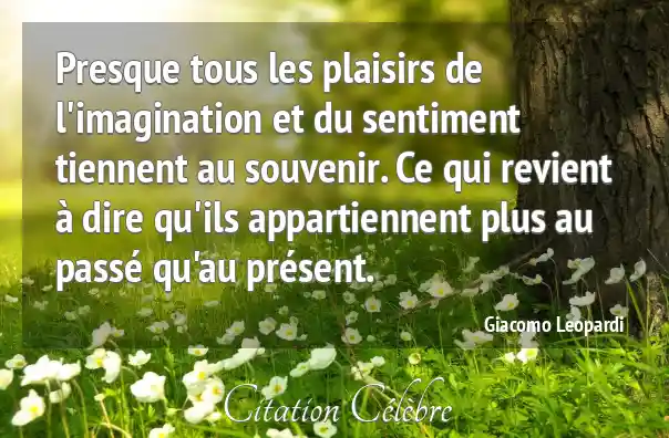 Presque tous les plaisirs de l'imagination et du sentiment tiennent au souvenir. Ce qui revient à dire qu'ils appartiennent plus au passé qu'au présent.