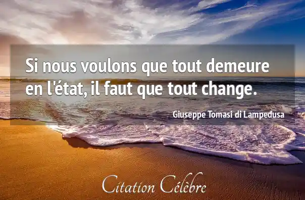 Si nous voulons que tout demeure en l'état, il faut que tout change.