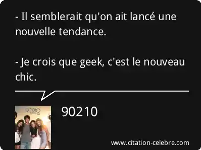 - Il semblerait qu'on ait lancé une nouvelle tendance. - Je crois que geek, c'est le nouveau chic.