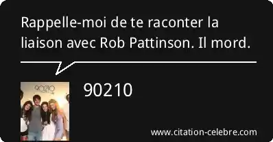 Rappelle-moi de te raconter la liaison avec Rob Pattinson. Il mord.