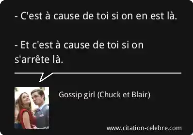 - C'est à cause de toi si on en est là. - Et c'est à cause de toi si on s'arrête là.