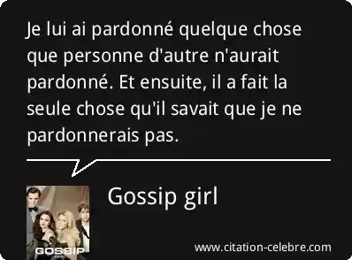 Je lui ai pardonné quelque chose que personne d'autre n'aurait pardonné. Et ensuite, il a fait la seule chose qu'il savait que je ne pardonnerais pas.