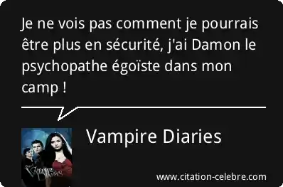 Je ne vois pas comment je pourrais être plus en sécurité, j'ai Damon le psychopathe égoïste dans mon camp !