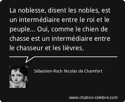 La noblesse, disent les nobles, est un intermédiaire entre le roi et le peuple... Oui, comme le chien de chasse est un intermédiaire entre le chasseur et les lièvres.