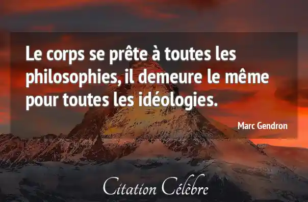 Le corps se prête à toutes les philosophies, il demeure le même pour toutes les idéologies.