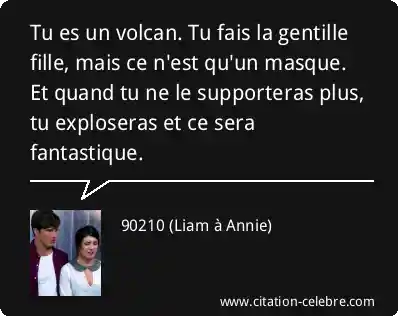 Tu es un volcan. Tu fais la gentille fille, mais ce n'est qu'un masque. Et quand tu ne le supporteras plus, tu exploseras et ce sera fantastique.