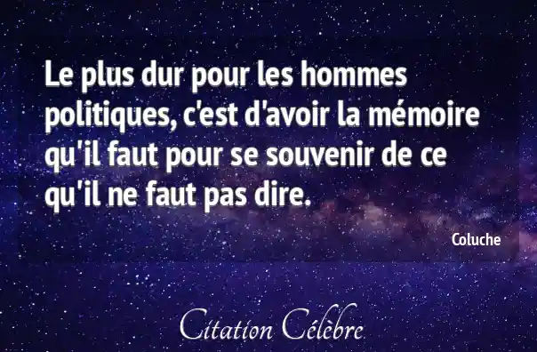 Le plus dur pour les hommes politiques, c'est d'avoir la mémoire qu'il faut pour se souvenir de ce qu'il ne faut pas dire.