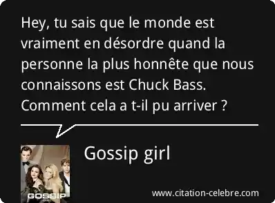 Hey, tu sais que le monde est vraiment en désordre quand la personne la plus honnête que nous connaissons est Chuck Bass. Comment cela a t-il pu arriver ?
