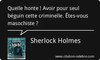 Quelle honte ! Avoir pour seul béguin cette criminelle. Êtes-vous masochiste ?