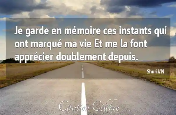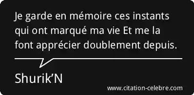 Je garde en mémoire ces instants qui ont marqué ma vie Et me la font apprécier doublement depuis.