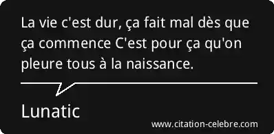La vie c'est dur, ça fait mal dès que ça commence C'est pour ça qu'on pleure tous à la naissance.