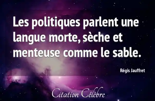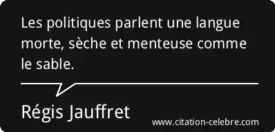 Citation Régis Jauffret langue : Les politiques parlent une langue morte, sèche et menteuse comme...