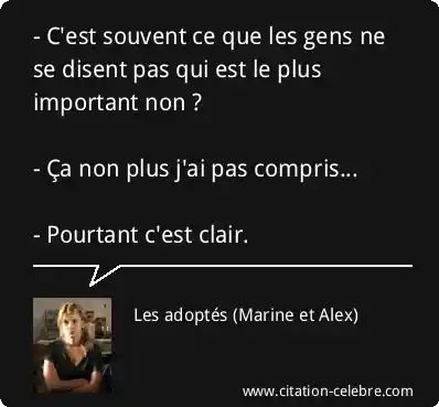 - C'est souvent ce que les gens ne se disent pas qui est le plus important non ? - Ça non plus j'ai pas compris... - Pourtant c'est clair.