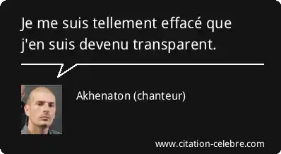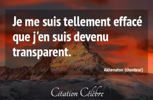 Citation Akhenaton (chanteur) suis : Je me suis tellement effacé que j'en suis devenu transparent....