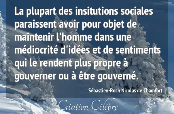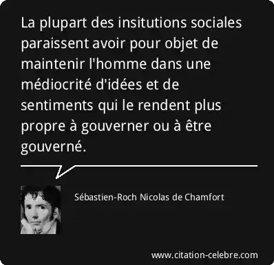 La plupart des insitutions sociales paraissent avoir pour objet de maintenir l'homme dans une médiocrité d'idées et de sentiments qui le rendent plus propre à gouverner ou à être gouverné.