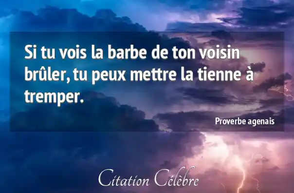 Si tu vois la barbe de ton voisin brûler, tu peux mettre la tienne à tremper.