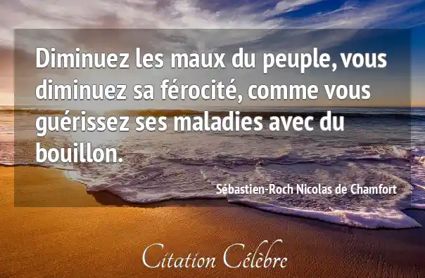 Diminuez les maux du peuple, vous diminuez sa férocité, comme vous guérissez ses maladies avec du bouillon.