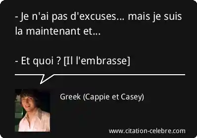 - Je n'ai pas d'excuses... mais je suis la maintenant et... - Et quoi ? [Il l'embrasse]