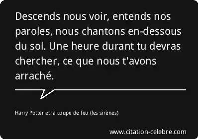 Descends nous voir, entends nos paroles, nous chantons en-dessous du sol. Une heure durant tu devras chercher, ce que nous t'avons arraché.