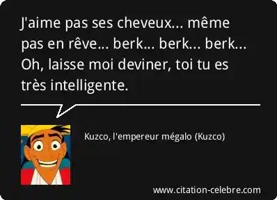 J'aime pas ses cheveux... même pas en rêve... berk... berk... berk... Oh, laisse moi deviner, toi tu es très intelligente.