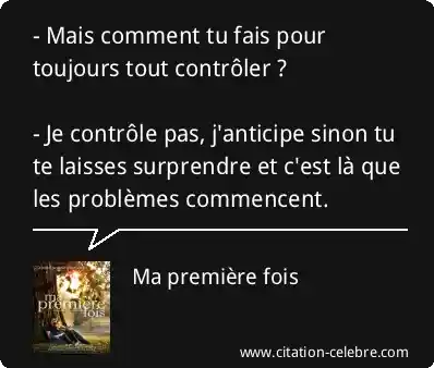 - Mais comment tu fais pour toujours tout contrôler ? - Je contrôle pas, j'anticipe sinon tu te laisses surprendre et c'est là que les problèmes commencent.