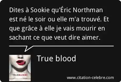Dites à Sookie qu'Éric Northman est né le soir ou elle m'a trouvé. Et que grâce à elle je vais mourir en sachant ce que veut dire aimer.