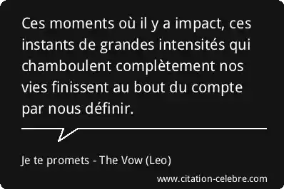 Ces moments où il y a impact, ces instants de grandes intensités qui chamboulent complètement nos vies finissent au bout du compte par nous définir.