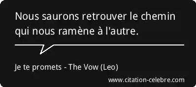 Nous saurons retrouver le chemin qui nous ramène à l'autre.