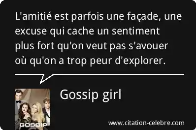 L'amitié est parfois une façade, une excuse qui cache un sentiment plus fort qu'on veut pas s'avouer où qu'on a trop peur d'explorer.