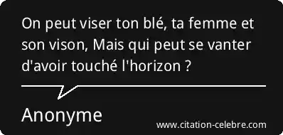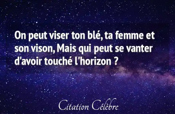On peut viser ton blé, ta femme et son vison, Mais qui peut se vanter d'avoir touché l'horizon ?