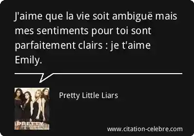 J'aime que la vie soit ambiguë mais mes sentiments pour toi sont parfaitement clairs : je t'aime Emily.