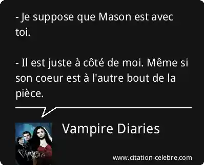 - Je suppose que Mason est avec toi. - Il est juste à côté de moi. Même si son coeur est à l'autre bout de la pièce.