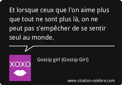 Et lorsque ceux que l'on aime plus que tout ne sont plus là, on ne peut pas s'empêcher de se sentir seul au monde.