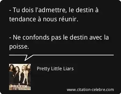 - Tu dois l'admettre, le destin à tendance à nous réunir. - Ne confonds pas le destin avec la poisse.