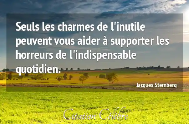 Seuls les charmes de l'inutile peuvent vous aider à supporter les horreurs de l'indispensable quotidien.