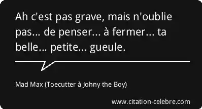 Ah c'est pas grave, mais n'oublie pas... de penser... à fermer... ta belle... petite... gueule.