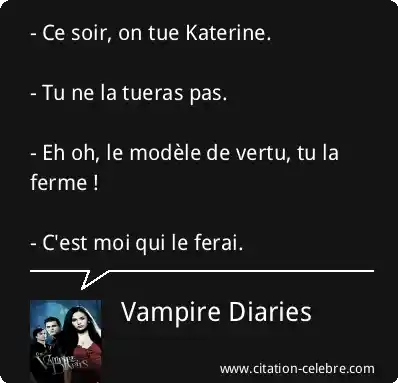 - Ce soir, on tue Katerine. - Tu ne la tueras pas. - Eh oh, le modèle de vertu, tu la ferme ! - C'est moi qui le ferai.