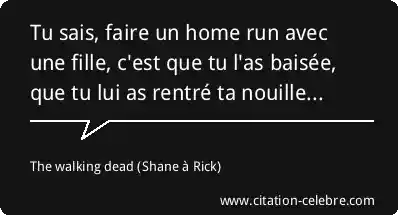 Tu sais, faire un home run avec une fille, c'est que tu l'as baisée, que tu lui as rentré ta nouille...