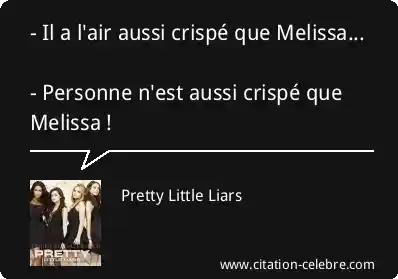 - Il a l'air aussi crispé que Melissa... - Personne n'est aussi crispé que Melissa !