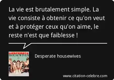 La vie est brutalement simple. La vie consiste à obtenir ce qu'on veut et à protéger ceux qu'on aime, le reste n'est que faiblesse !