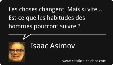 Les choses changent. Mais si vite... Est-ce que les habitudes des hommes pourront suivre ?