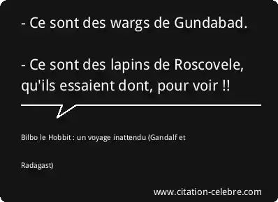 - Ce sont des wargs de Gundabad. - Ce sont des lapins de Roscovele, qu'ils essaient dont, pour voir !!