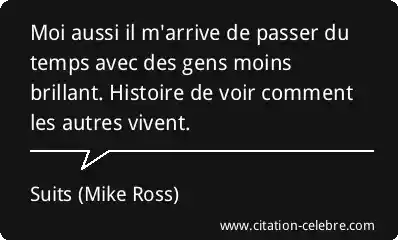 Moi aussi il m'arrive de passer du temps avec des gens moins brillant. Histoire de voir comment les autres vivent.
