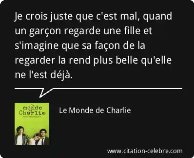 Je crois juste que c'est mal, quand un garçon regarde une fille et s'imagine que sa façon de la regarder la rend plus belle qu'elle ne l'est déjà.
