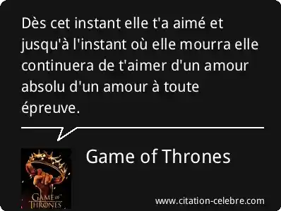 Dès cet instant elle t'a aimé et jusqu'à l'instant où elle mourra elle continuera de t'aimer d'un amour absolu d'un amour à toute épreuve.