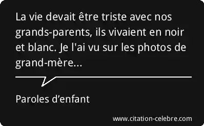 La vie devait être triste avec nos grands-parents, ils vivaient en noir et blanc. Je l'ai vu sur les photos de grand-mère...