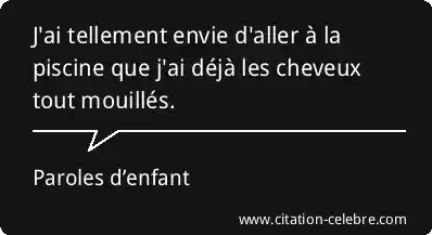 J'ai tellement envie d'aller à la piscine que j'ai déjà les cheveux tout mouillés.